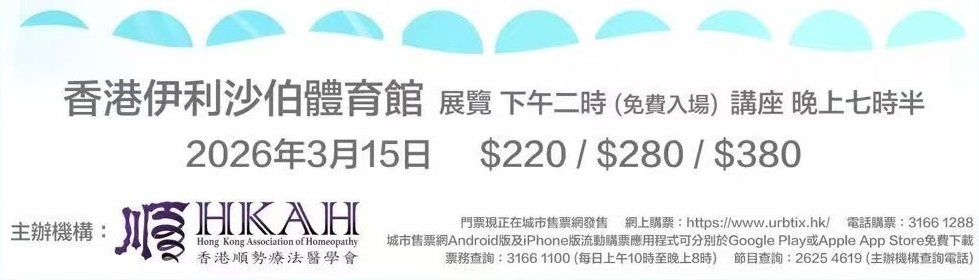 今年 3 月 15 日將會在灣仔新伊館舉辦 傳統與補充醫學國際標準化聯盟,順勢療法學國際研討會 。