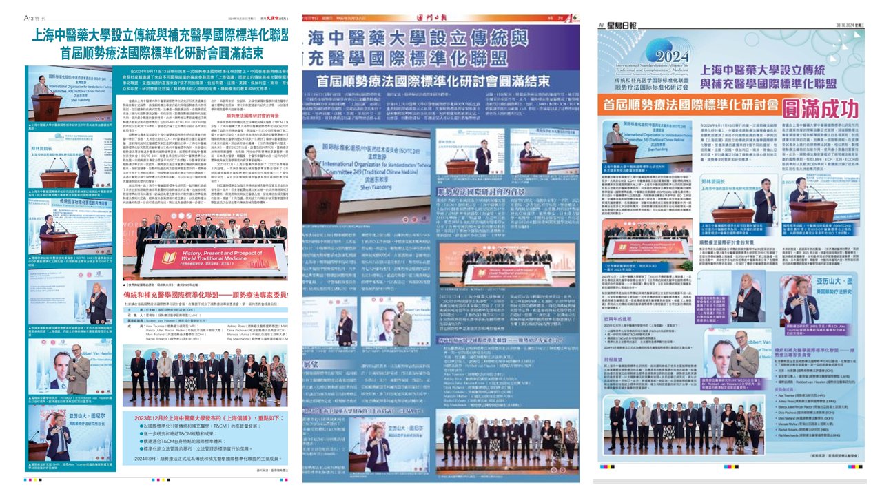有關《上海倡議》、《上海中醫藥大學設立傳統與補充醫學國際標準化聯盟》及《首屆順勢療法國際標準化研討會》的報導已於 2024 年 10 月 30 日刊登於以下報章: